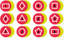 Minnisleikur sem gaman er að leika með á gólfi, 12 mottur með formunum og númerum Sá fyrsti hleypur og snýr við mottunni sýnir og snýr svo aftur á hvolf. Leikið eins og memo það lið sem finnur flestar samstæðurnar vinnur. Hægt að fá sett i gulum eða rauðum lit - einnig gaman að vera með sitthvort settið til að finna gula á móti rauða þá verður leikurinn erfiðari.