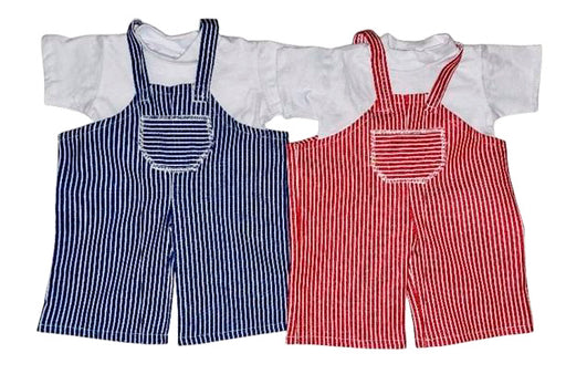 ABC SkólavörurDúkkuföt hvítur bolur og bláar röndóttar smekkbuxur 30 cm