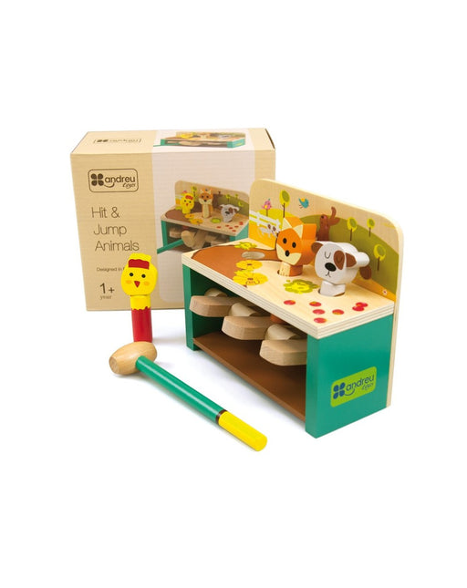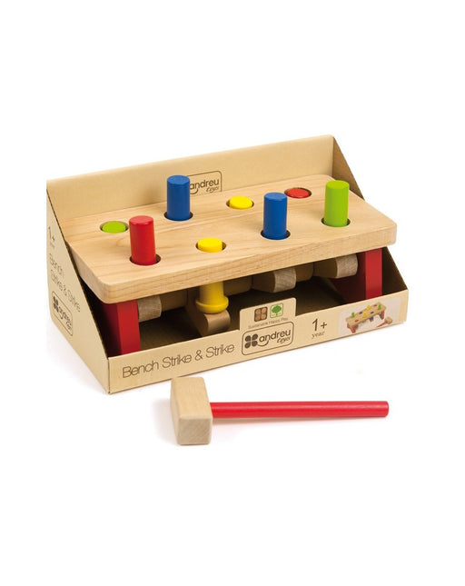 Andreu toysTrébekkur til að slá niður kubbana Skemmtu þér og sláðu niður alla litastikurnar þegar þær birtast.