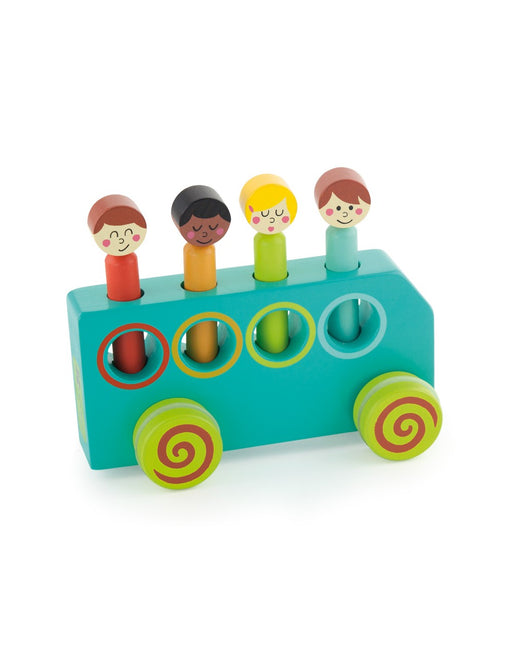 Andreu toysStrætó tré með körlum sem poppast upp 4 karlar sem eru paraðir saman við lit ýtt niður og þeir hoppa upp. Aldur 1árs