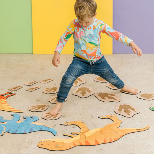 Educational AdvantageRisaeðlur og fótspor til að hoppa á milli og búa til allskonar leiki. Inniheldur 20 mottur sem renna ekki til á gólfinu eru úr náttúrulegu gúmmí. S...