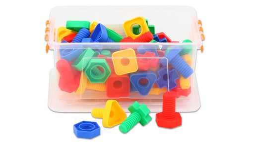 BLSSkrúfur og rær í fötu 64 stk litir og form fyrir 12mán +