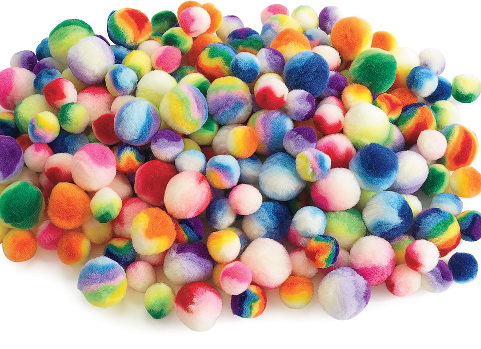Dúskar regnbogalitaðir 180 stk stærð 2,5 - 3,8cm á stærð blandaðir litir