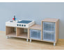 Eldhúshborp er með færanlegum vaski úr málmi, sem auðvelt er að taka úr og þrífa. Hnapparnir á blöndunartækinu eru hreyfanlegir og líta út eins og í alvöru eldhúsi, sem eykur leikgleðina og skapar raunverulega upplifun